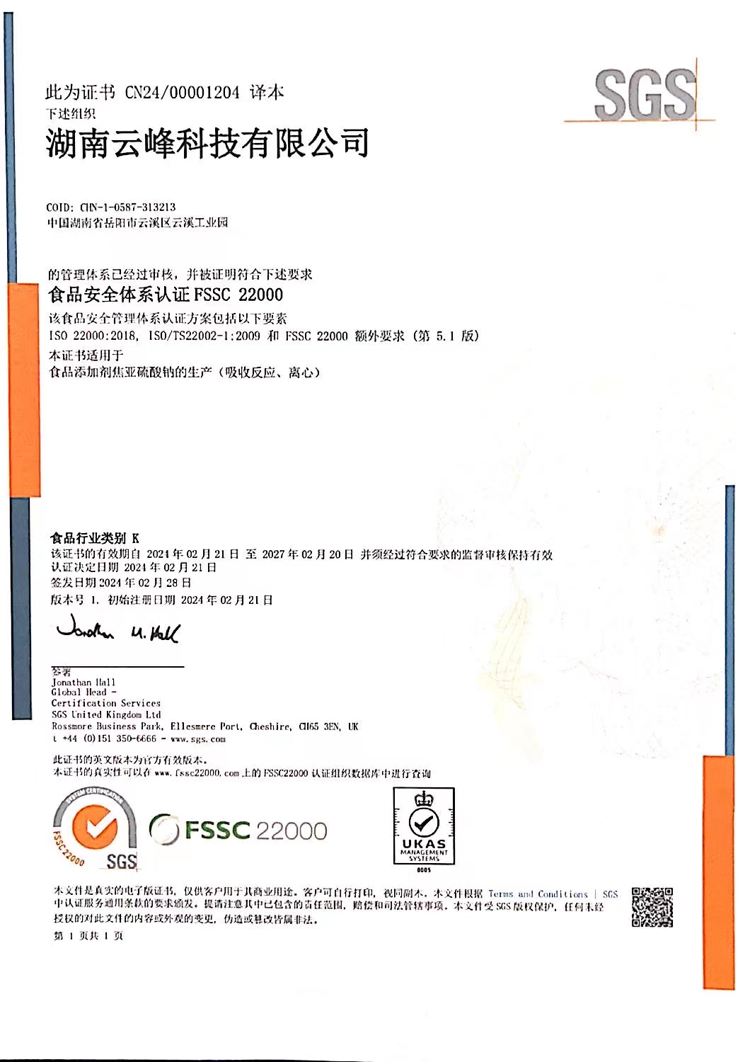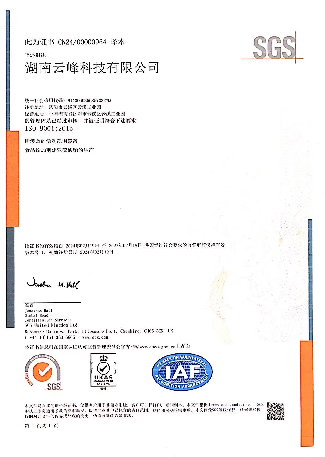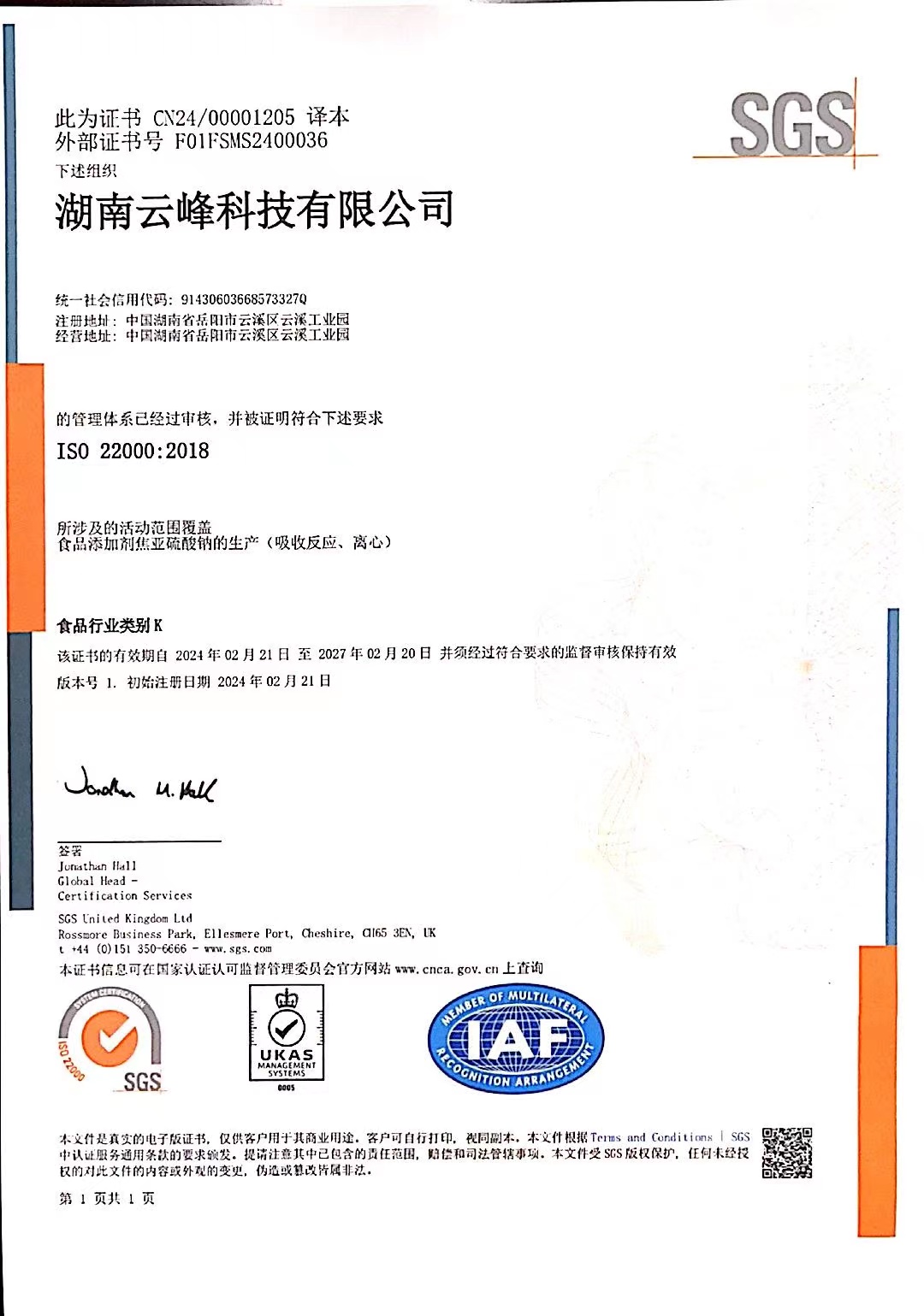 湖南云峰科技有限公司(以下簡稱云峰科技),是由長沙湘岳化工責(zé)任有限公司全額投資以生產(chǎn)焦亞硫酸鈉、亞硫酸鈉等亞硫酸鹽為主營業(yè)務(wù)的高科技企業(yè),具有六十多年的生產(chǎn)歷史,同時也是焦亞硫酸鈉的國家標(biāo)準(zhǔn)制定參與者。在行業(yè)內(nèi)具有很大的影響力?,F(xiàn)有職工八十余人。具有優(yōu)良的經(jīng)營管理團隊和成熟的生產(chǎn)技術(shù)隊伍。由多位在化學(xué)、化工行業(yè)擁有豐富工作經(jīng)驗的工程師及技術(shù)員團隊組建而成,致力于亞硫酸鹽產(chǎn)品的研發(fā)、生產(chǎn)和銷售。2020年公司對生產(chǎn)設(shè)備、安環(huán)設(shè)施及工業(yè)技術(shù)等進行了大規(guī)模的升級改造,使焦亞硫酸鈉和亞硫酸鈉的生產(chǎn)工藝更加先進,技術(shù)更成熟,產(chǎn)品質(zhì)量更優(yōu)良。無論在生產(chǎn)工藝、設(shè)備、產(chǎn)品質(zhì)量、清潔生產(chǎn)、節(jié)能環(huán)保和員工素質(zhì)方面,均處于行業(yè)領(lǐng)先地位。公司的主導(dǎo)產(chǎn)品“云峰”牌焦亞硫酸鈉,歷史悠久,深受國內(nèi)外客戶信賴,產(chǎn)品遠(yuǎn)銷東南亞、歐美、非洲、南美洲等20多個國家和地區(qū),產(chǎn)品供不應(yīng)求。